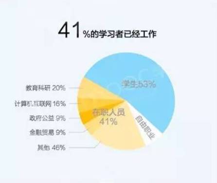 如果说一部分学习者选择在线教育的目的是为了获得国家承认学历,那么那些真心希望借助技术手段实现提高的人们,本身却拥有着较高的学历。其中本科学历者所占的比重之大,也明确的告诉在线教育者们,技能和工作素养的提升是这部分人最大的需求。